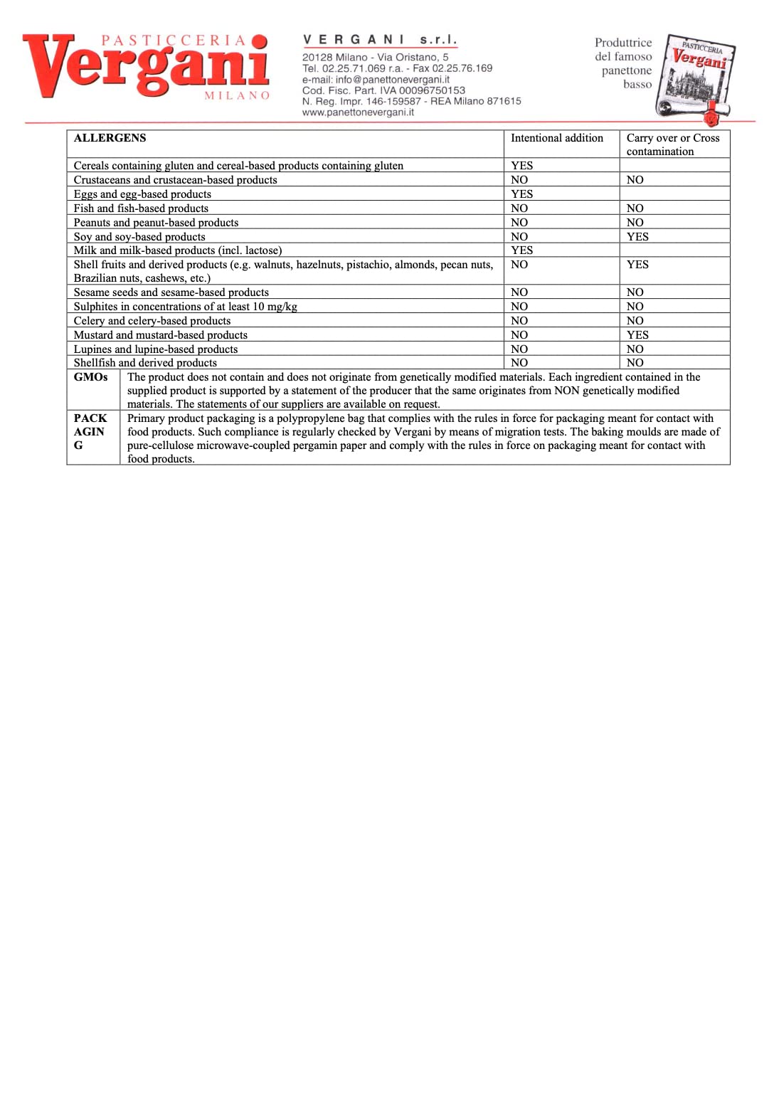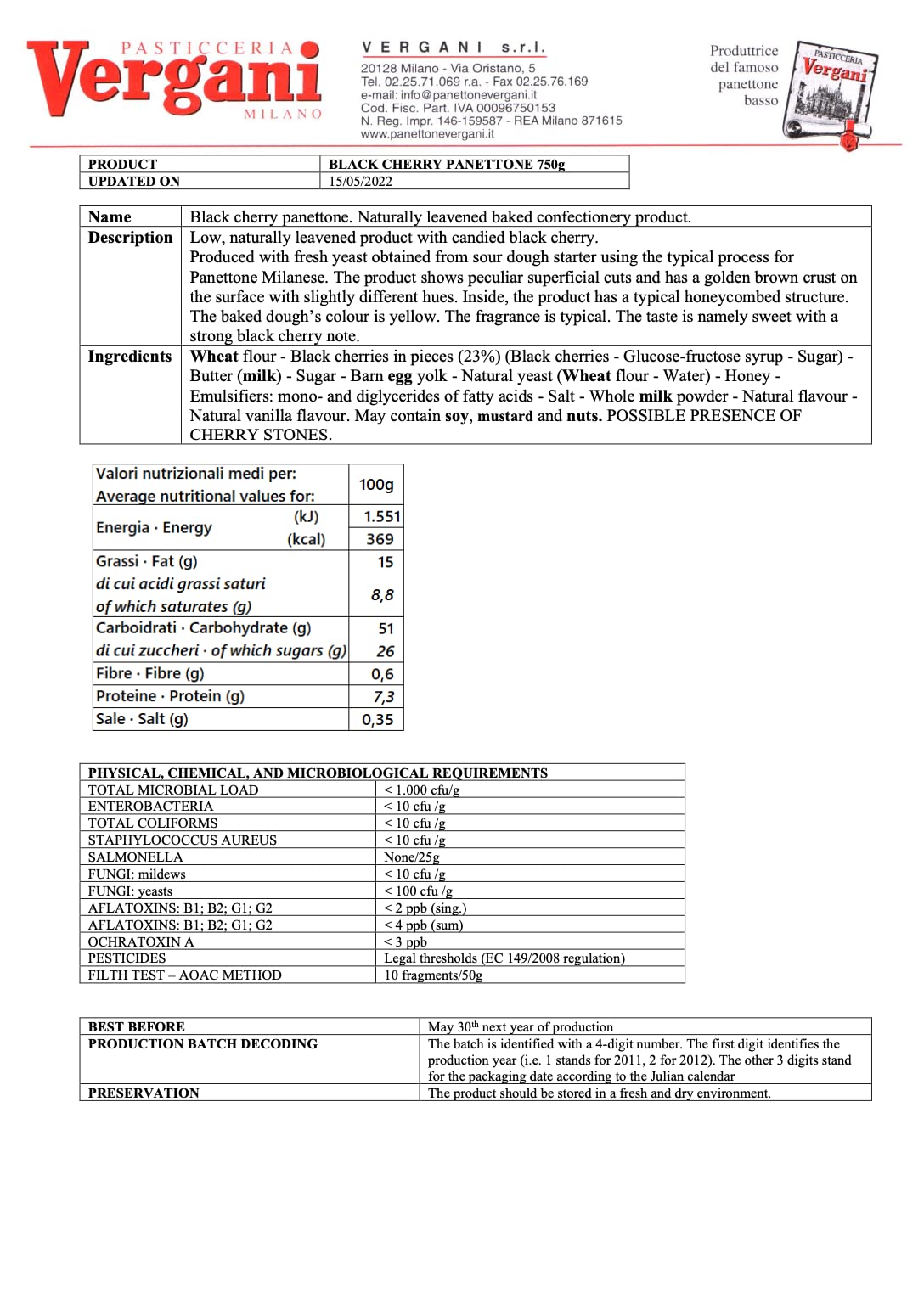 Crafted by Vergani using a traditional Italian recipe